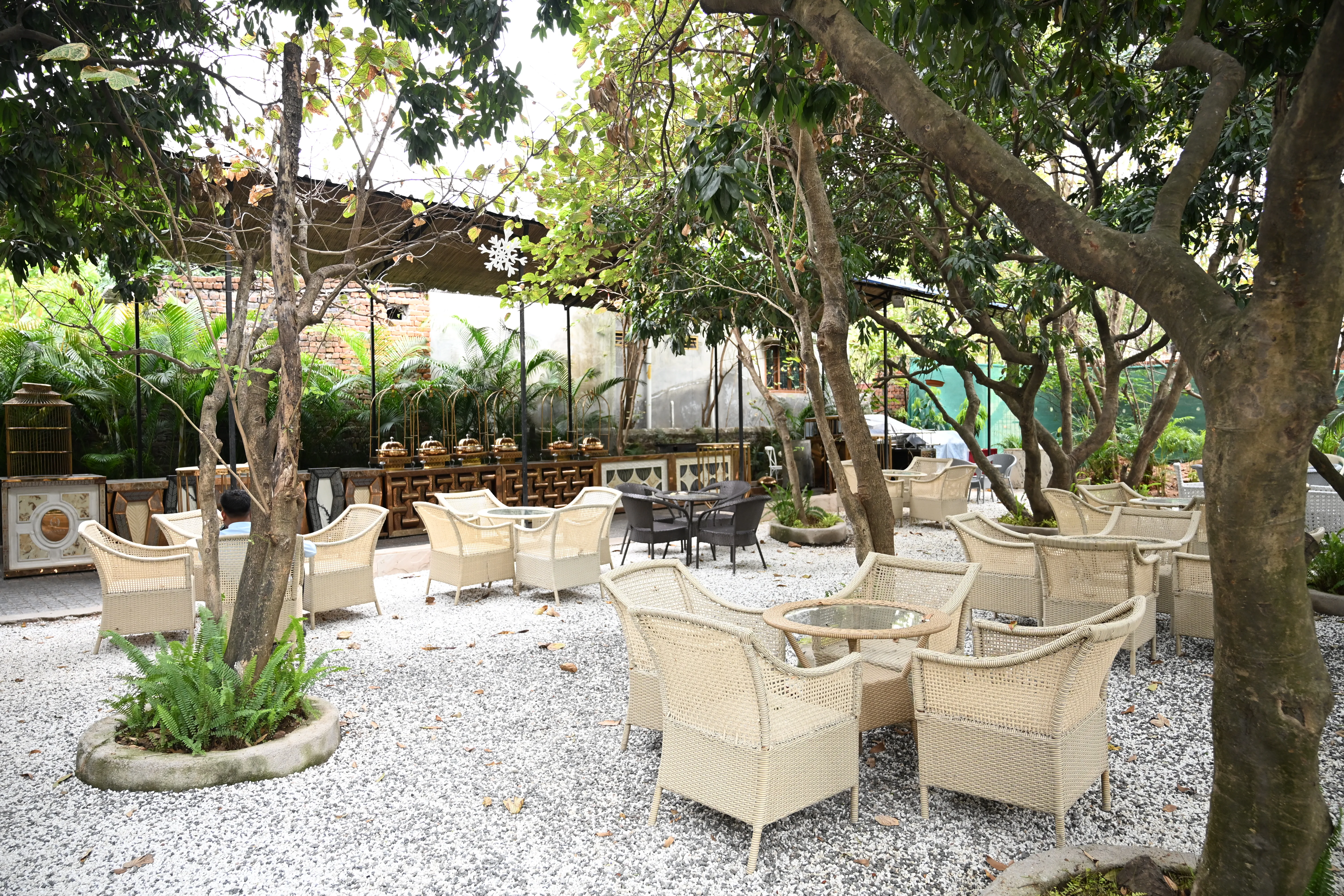 A tranquil, tree-shaded outdoor space ideal for hosting family dinners, birthday parties, and casual get-togethers. Enjoy a comfortable, open-air environment for your smaller events.