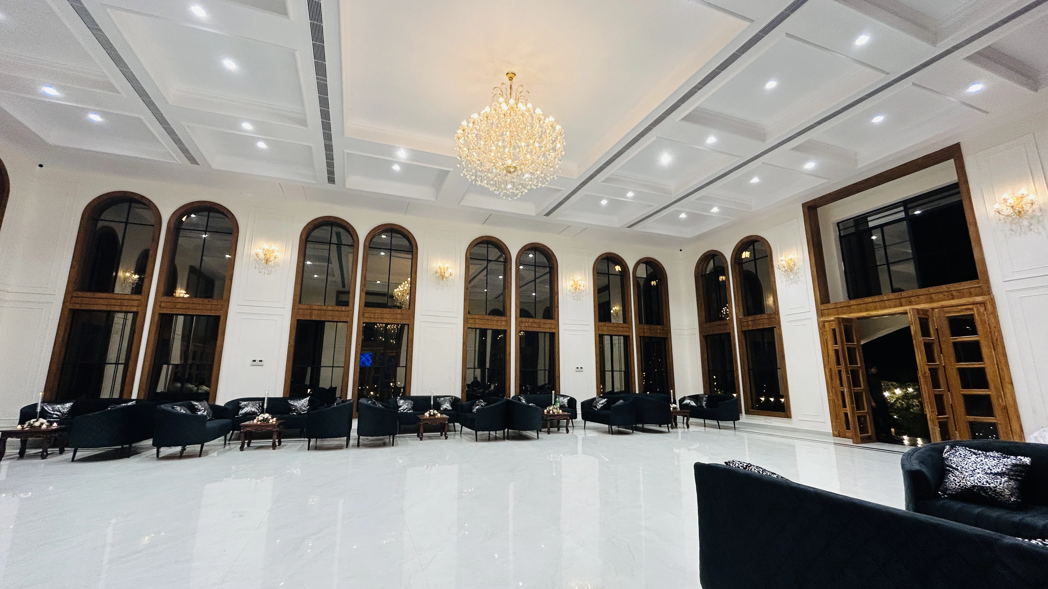 Our premium indoor banquet hall offering a grand setting for weddings, corporate events, and large parties. Elegant interiors with modern facilities.